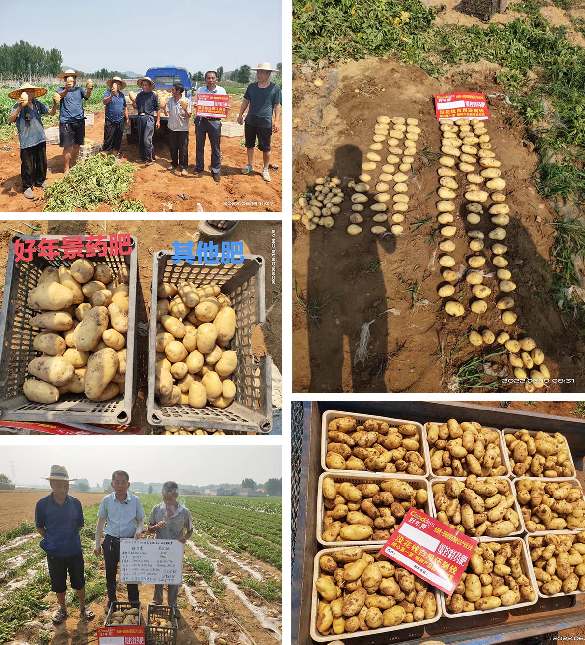 2022年6月19日,好年景藥肥廠家在山東沂南縣大王莊鄉(xiāng)泥泉官村(種植戶:王金貴),召開土豆現(xiàn)場(chǎng)測(cè)產(chǎn)觀摩會(huì),使用好年景藥肥示范田馬鈴薯成品果多,個(gè)頭大且非常均勻,品相好看,商品價(jià)值高,次品果少,對(duì)照田馬鈴薯個(gè)頭較小,大小不均勻,顏色發(fā)烏,小果偏多,經(jīng)過測(cè)算,使用好年景緩釋藥肥示范田每畝增產(chǎn)2281斤,增產(chǎn)增收效果顯著,種植戶對(duì)效果表現(xiàn)非常滿意,并表示今年玉米已經(jīng)全部使好年景藥肥,好年景藥肥省工、防效、提質(zhì)、增產(chǎn)。